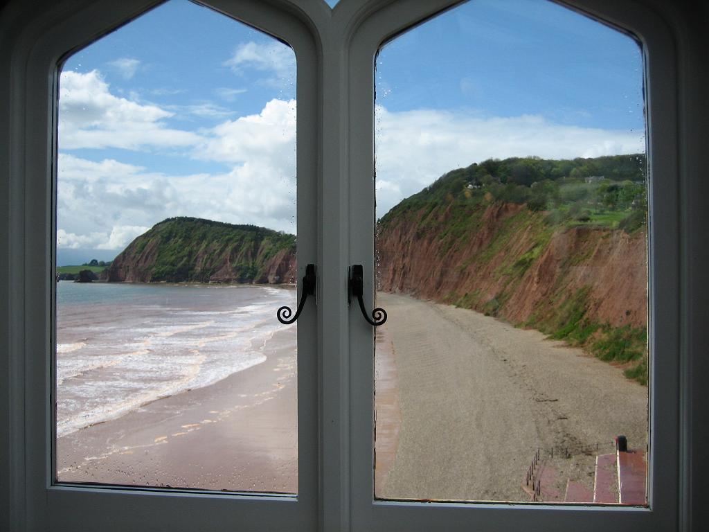 It’s Sidmouth. This place is worth going to for the cakes alone, Jane, apart from the beautiful view. Heading west out of Sidmouth on the coast road the place is on your left. They have a beautiful secret garden, too…